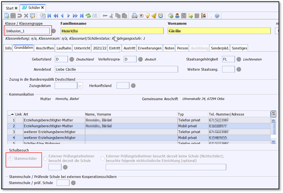 Diese werden genauso wie alle anderen Schüler der Schule als Stammschüler geführt, nur im Reiter Sonderpäd. muss der sonderpädagogische Bildungsanspruch und der Förderschwerpunkt eingetragen werden.