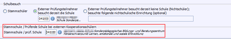 In dem Fall muss das Feld Externer Prüfungsteilnehmer besucht derzeit die Schule nicht ausgefüllt werden.