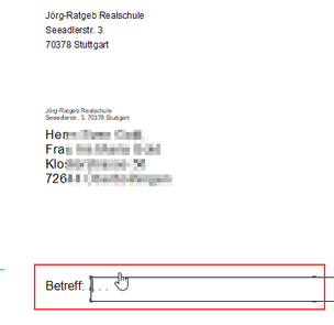 >Text vor dem Druck editieren Sie können direkt vor der Druckausgabe noch Änderungen am Text vornehmen, wenn Sie das Häkchen bei "Gesperrt für Eingabe" entfernen (s.u.). So könnte z.B. ein Betreff oder ein Datum noch direkt vor dem Druck eingegeben bzw. verändert werden.