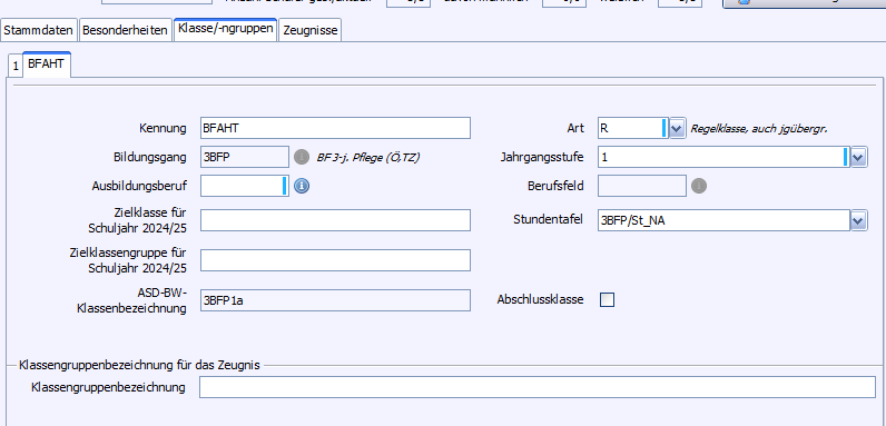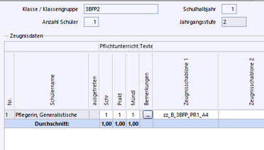Navigation: Zeugnisse > Zeugniskonfiguration > Berufliche Schulen > BFS - Berufsfachschule 3BFP/BFPL |